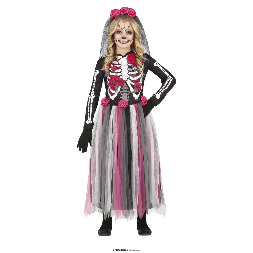 This beautiful Catrina costume is perfect for your little ones to look scary yet cute at the same time. The skeleton day of the dead themed costume can be paired with some unique face make up.Â