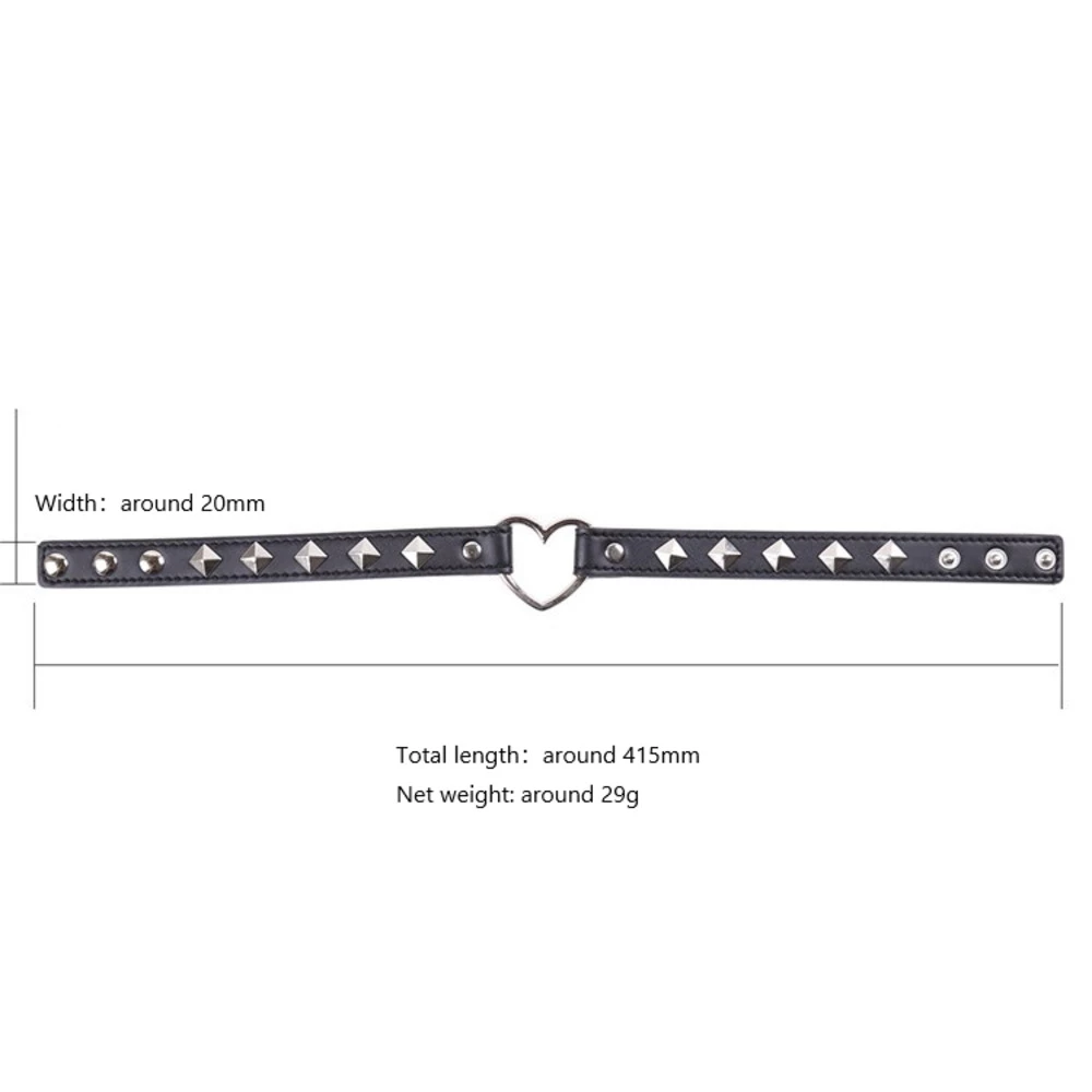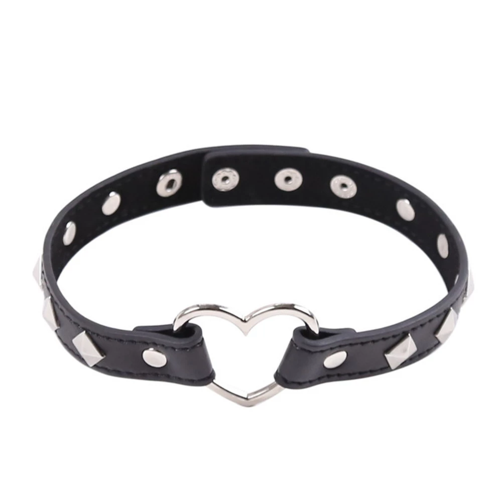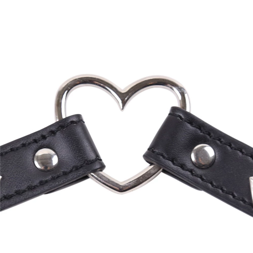 This fashionable black leather choker features a stylish heart shaped ring in the centre, finished with silver studs around the straps. This accessory really can create your outfit, adding a unique stylish effect.