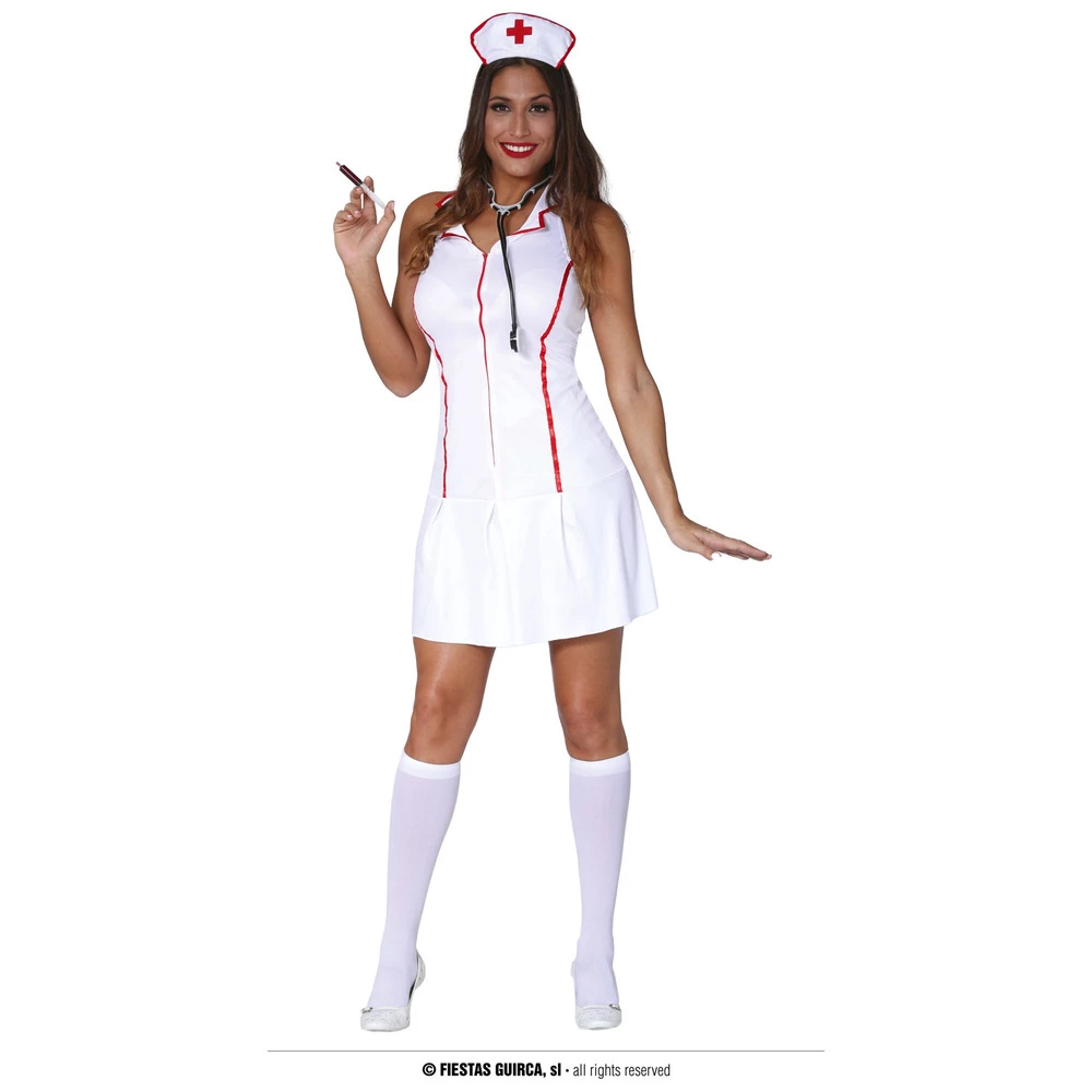 Its time to go and help the world with this white nurse costume, every patient will want to be seen by you when wearing this costume. The classic white costume is perfect for fancy dress events or maybe you can turn the costume into a zombie.