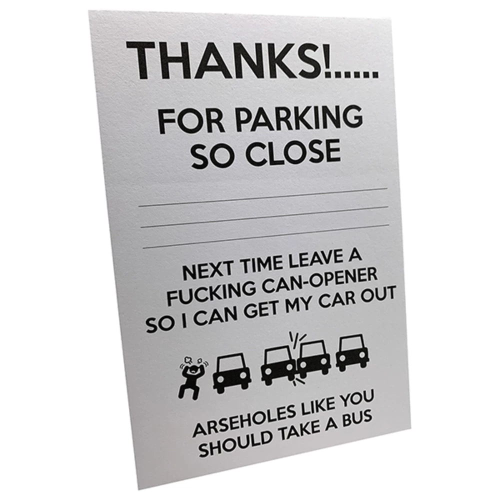 Perfect for making a point next time you get trapped in your parking space by an idiotic inconsiderate driver! Don’t let them get away with it!
