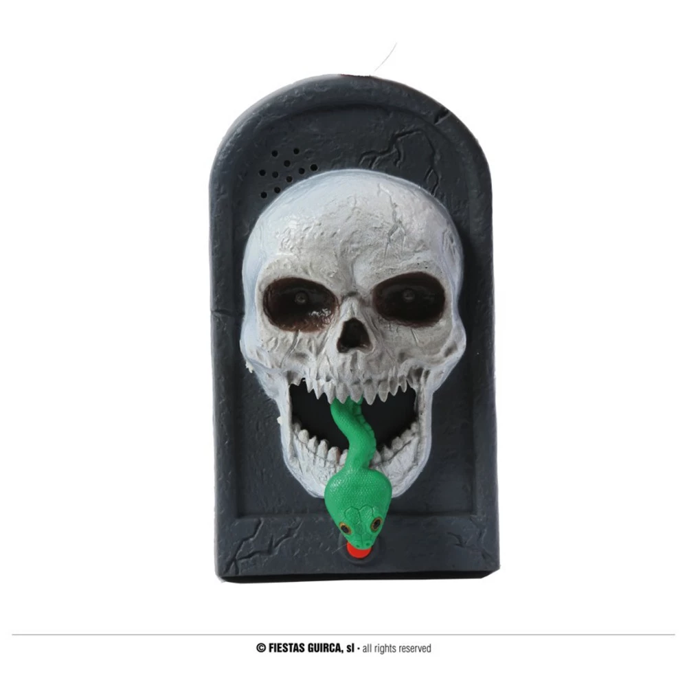 This unique Halloween themed door bell is a great feature to add to any haunted house. The doorbell runs on batteries and makes noises and moves when ringing the bell. This is doorbell is sure to scare the guests.Â