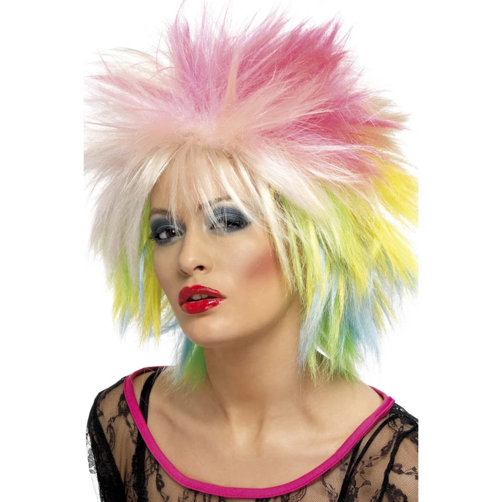 Have you got the 80s attitude, well you do not need to worry when wearing this wig you sure will. The spikey pastel colour wig is a great add on to your punk costume.Â